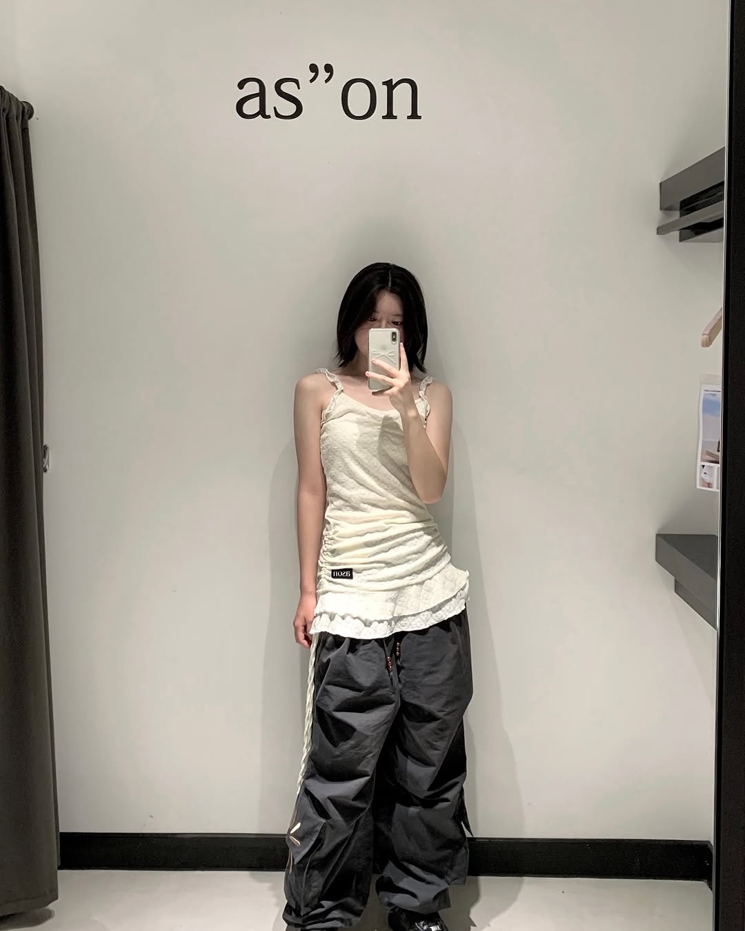 옷을 고르면서 피팅룸에서 사진도 찍어봤는데, 피팅룸 조명도 좋고 거울도 커서 인생샷 건지기 딱 좋았어요! 📸 여러분도 홍대에 오시면 꼭 '애즈온' 쇼룸에 방문해보세요. 분명 마음에 쏙 드는 아이템을 발견하실 수 있을 거예요!
