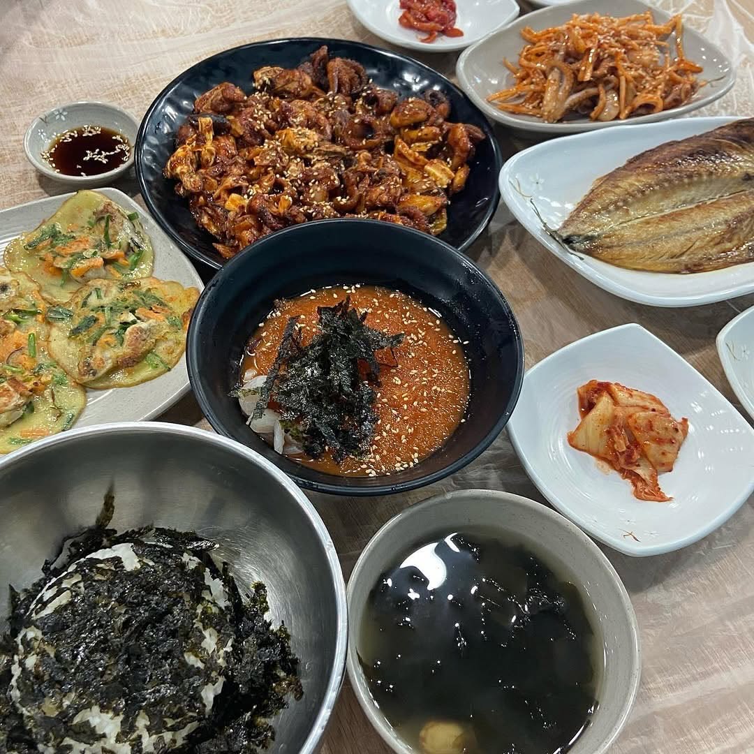 생굴회, 굴전, 굴튀김, 굴무침, 쭈꾸미무침, 굴미역국, 생선구이까지!