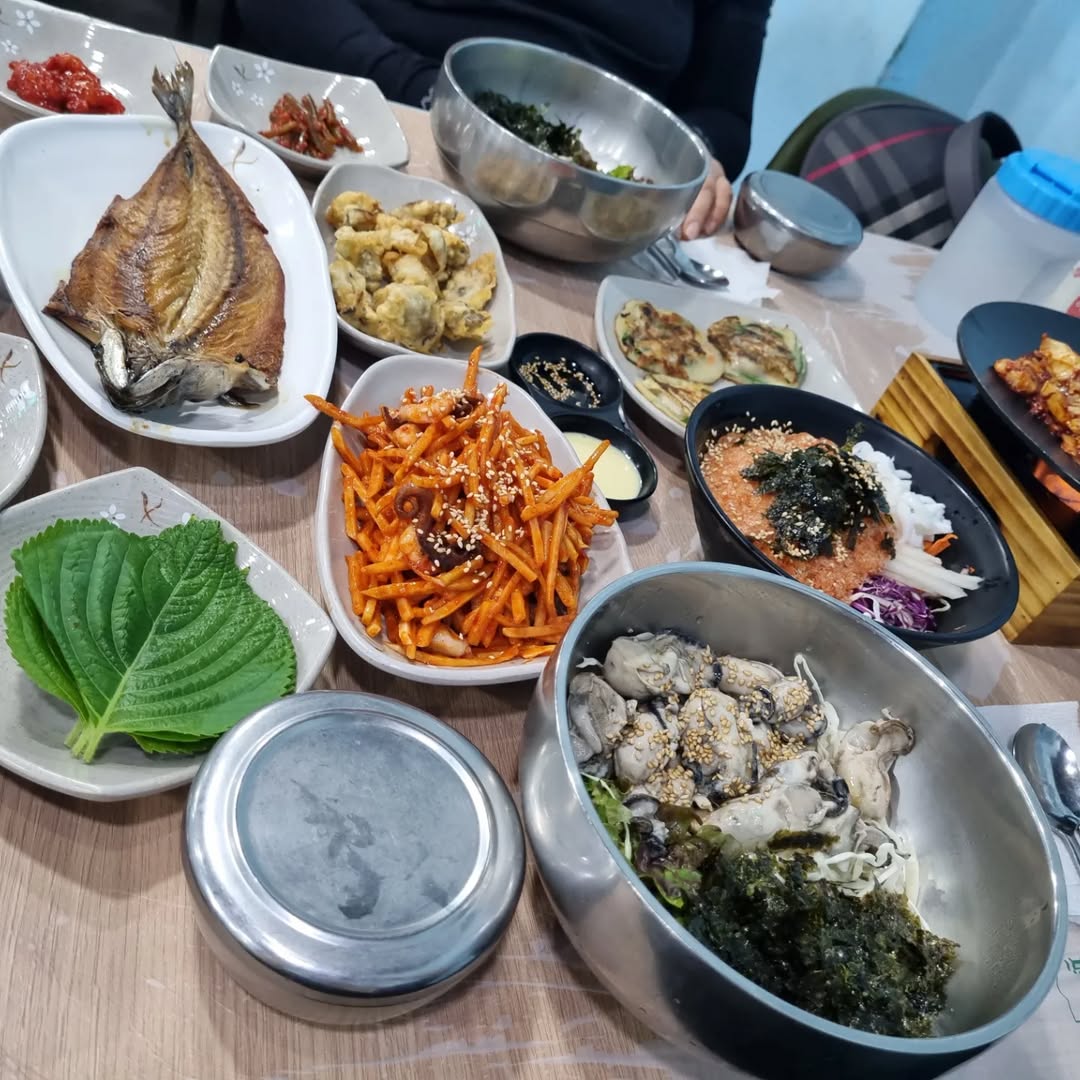여기에 회덮밥·멍게비빔밥·굴비빔밥 중 원하는 식사 메뉴까지 선택할 수 있으니, 거의 굴 코스 요리 맛집 수준이더라고요. 🤩특히 굴전은 치즈 맛이 살짝 나는 듯하면서도 고소함이 일품이었고,