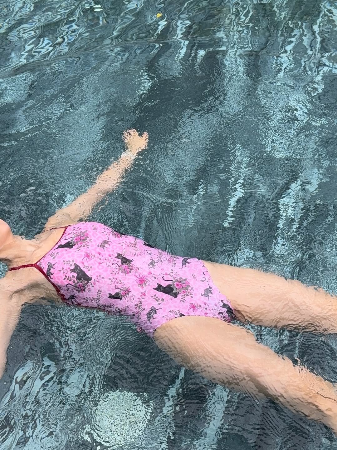 물에 젖으니 연두색 베이스에 핑크빛 꽃들이 더욱 은은하게 살아나는데, 이게 정말 입수했을 때 훨씬 예쁜 수영복이더라고요! 💚