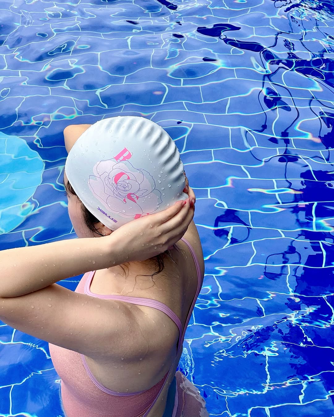 러브로제 실리콘 수모는 긴 머리도 안정적으로 잡아줘서 수영하는 동안 불편함 없이 집중할 수 있었어요. 프린팅도 짱짱해서 오래 사용할 수 있을 것 같아요. 🎀